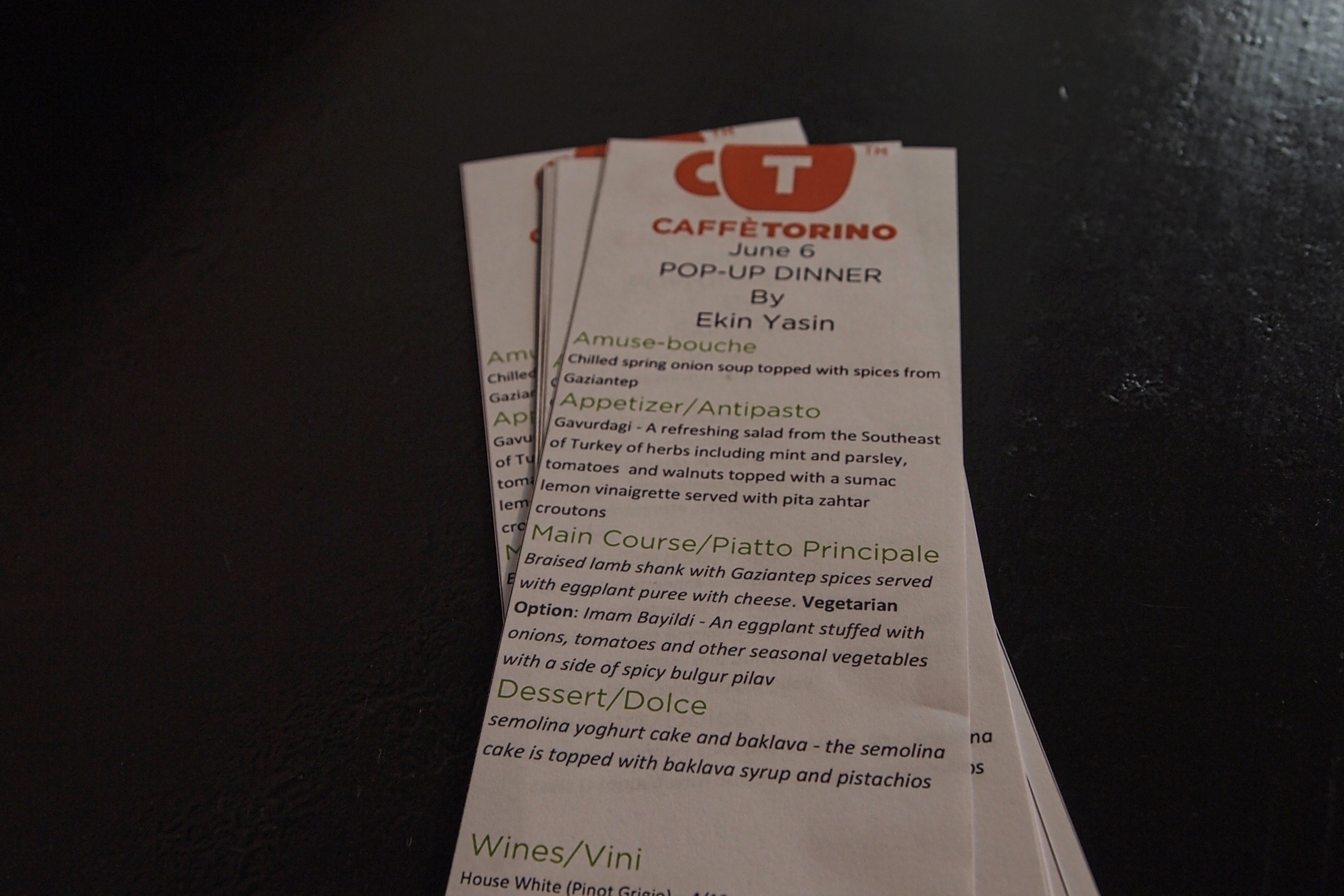 This was my second dinner at Caffe Torino located in the South Lake Union neighborhood of Seattle. This time the task was a bit more challenging – I had to cook for 41 people. In honor of the upcoming elections – I blended the meal with spices arriving from Southeast region of Turkey.