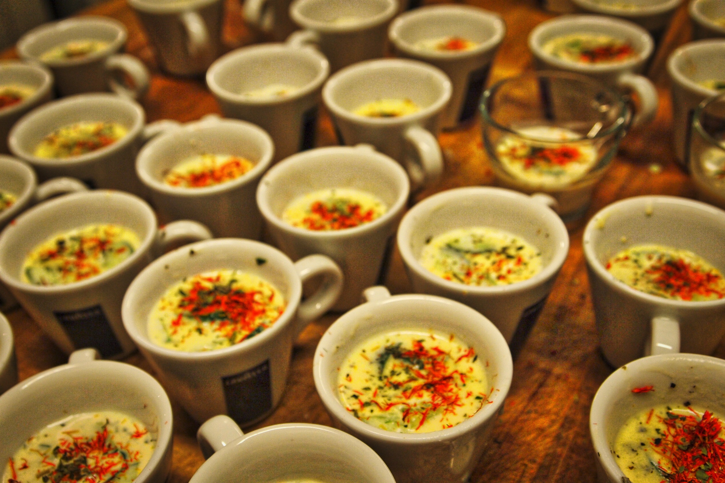 Around 4 PM I started prepping for the arrival of guests and plating the first course which was a Chilled Cumin Yoghurt Soup with spring onions and carrots.
